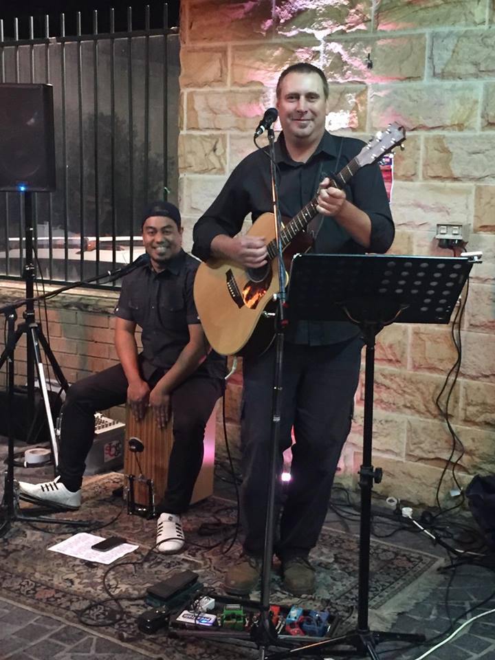 Acoustic Autograph Duo (Matt & Raj) performing at an event (Cocktail Hour and Dance Music).